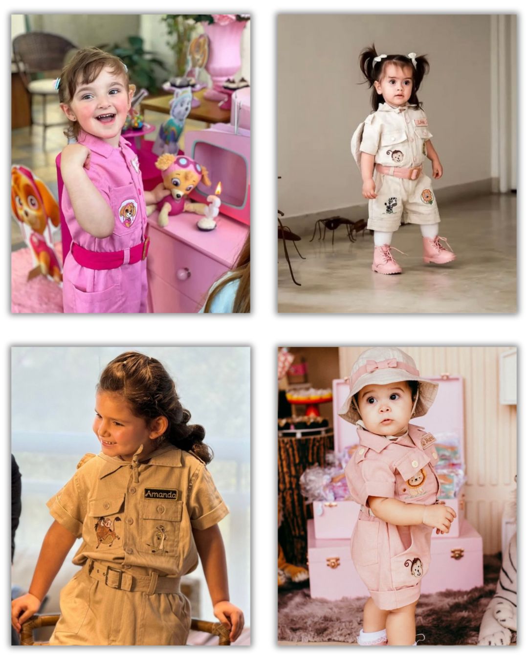 Tenha acesso a uma biblioteca exclusiva com diversas matrizes de bordado que combinam perfeitamente com o Macacão Safári, como Mickey, Rei Leão, Dino, Patrulha canina, Jurassic Park e muitos outros.