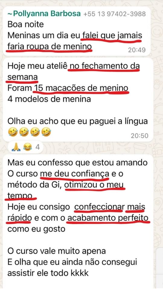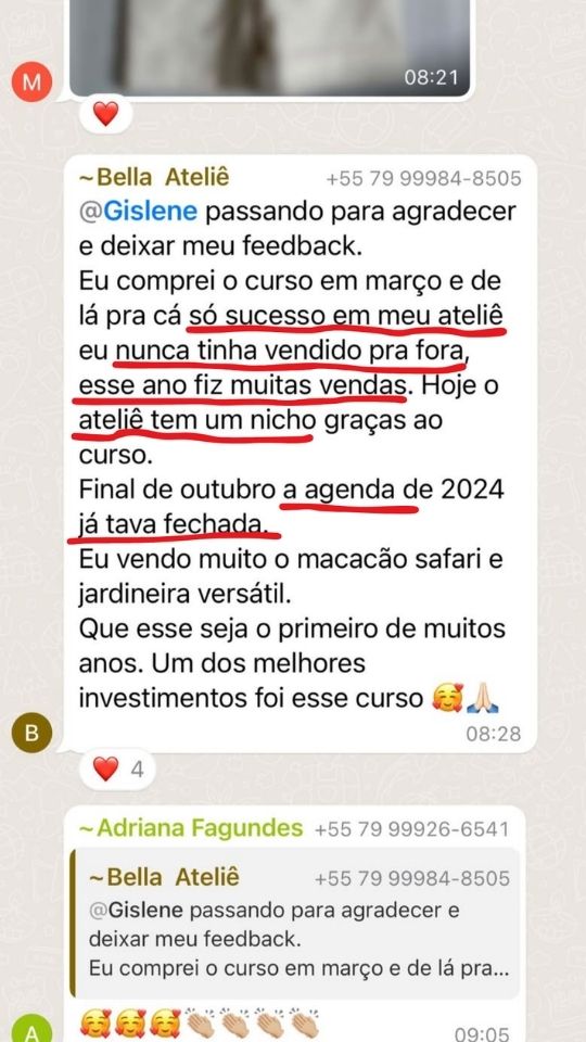 Hoje, além de produzir peças impecáveis, Gislene é reconhecida por sua didática clara e atenção aos detalhes, já tendo formado centenas de costureiras que aplicam seu método para criar looks únicos, se destacarem no mercado, cobrar preços premium e ocupar esse espaço, com muita demanda e pouca concorrência, das roupas personalizadas de alto padrão para meninos.